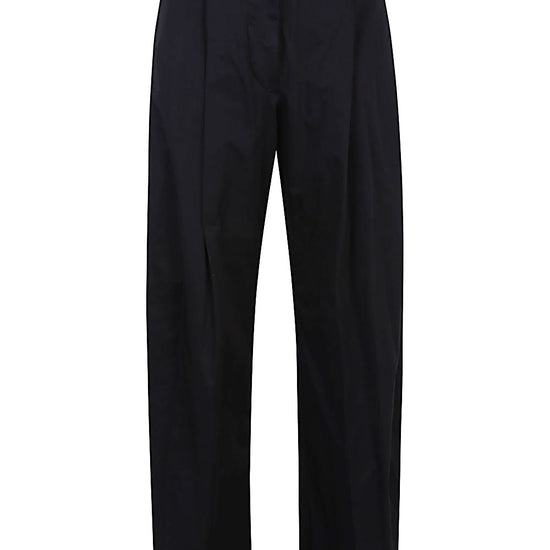 Blue trousers, belt loop, zip and button closure, straight hem. billie cotton trousers size and fit - this piece fits true to size. we recommend you get your regular size. model is 1,75m / 5ft 8in wearing size 40 (it)