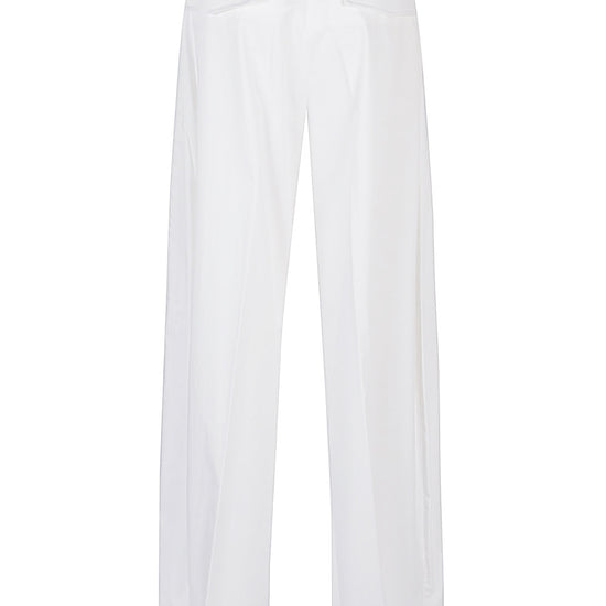White trousers, belt loop, zip and button closure, straight hem. billie cotton trousers size and fit - this piece fits true to size. we recommend you get your regular size. model is 1,75m / 5ft 8in wearing size 40 (it)