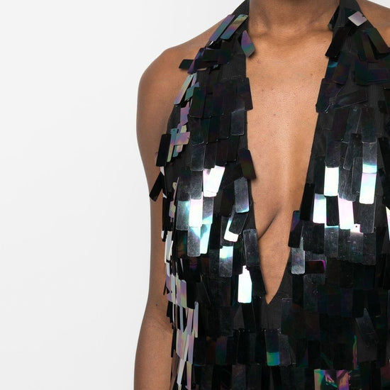 Spalline, scollo a v, con paillettes fringe sequin mini dress size and fit - this piece fits true to size. we recommend you get your regular size. model is 1,75m / 5ft 8in wearing size 36 (fr)