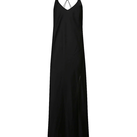 Long dress with side slit, v-neck and crossed straps on the back. long dress size and fit - this piece fits true to size. we recommend you get your regular size. model is 1,75m / 5ft 8in wearing size s