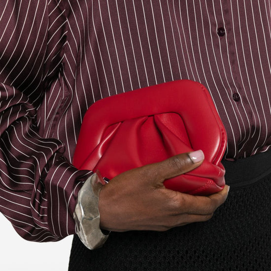 Red gathered detail this piece comes complete with a protective dust bag. bios small vegan leather clutch size and fit - depth: 10.0 centimetres. height: 12.0 centimetres. width: 20.0 centimetres.