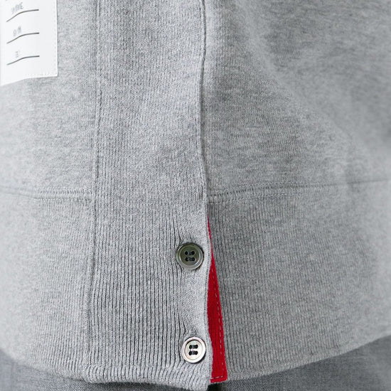 Pebble grey made from loopback cotton jersey crew neck with v insert long sleeves 4-bar stripe at left arm name tag appliqué at left side tricolour grosgrain loop at nape ribbed trims straight hem with button side fastening relaxed fit