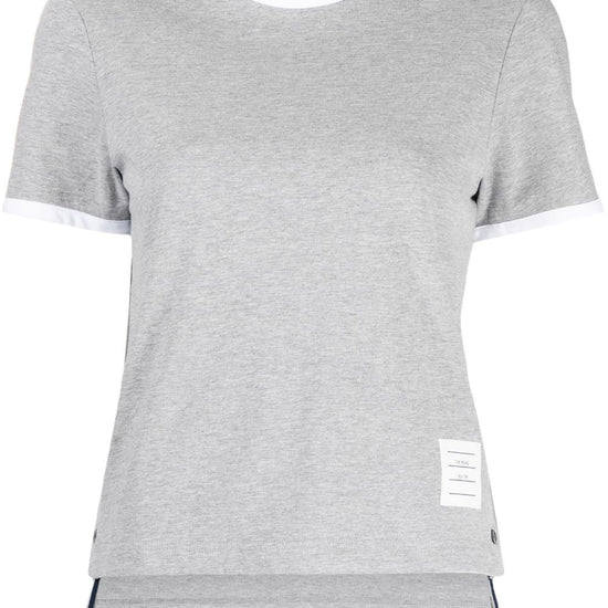 Light grey cotton contrasting trim rwb stripe logo patch to the side crew neck side button fastening short sleeves asymmetric hem  cotton t-shirt