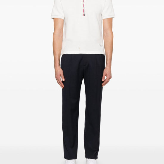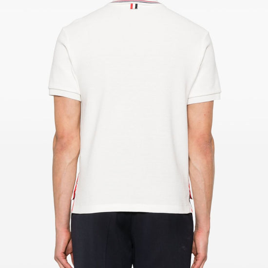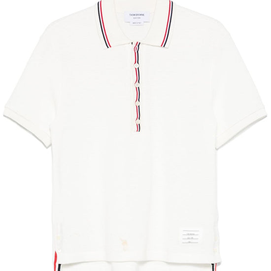 White front button placket ribbed cuffs short side slits rwb cotton polo shirt