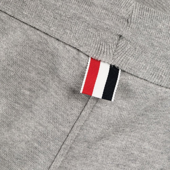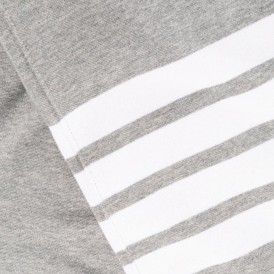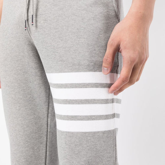 Grey cotton signature 4-bar stripe signature grosgrain loop tab drawstring fastening waist two side slit pockets rear welt pocket 4bar cotton sweatpants