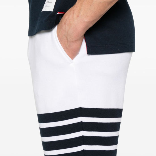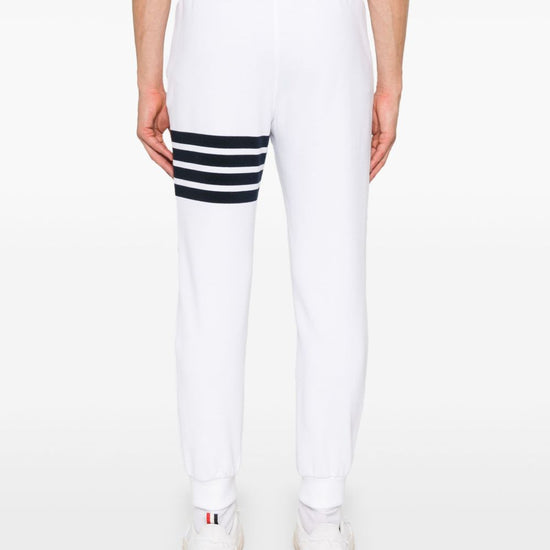 White elasticated drawstring waistband two side slit pockets logo patch to the side signature grosgrain loop tab 4bar cotton sweatpants