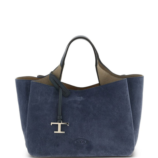 Blue suede double top-handle detachable t timeless pendant metal feet internal zip-pockets this piece comes complete with a protective dust bag. mini leather tote bag size and fit - depth: 17.0 centimetres. handle: 15.0 centimetres. height: 19.5 centimetres. width: 29.0 centimetres.