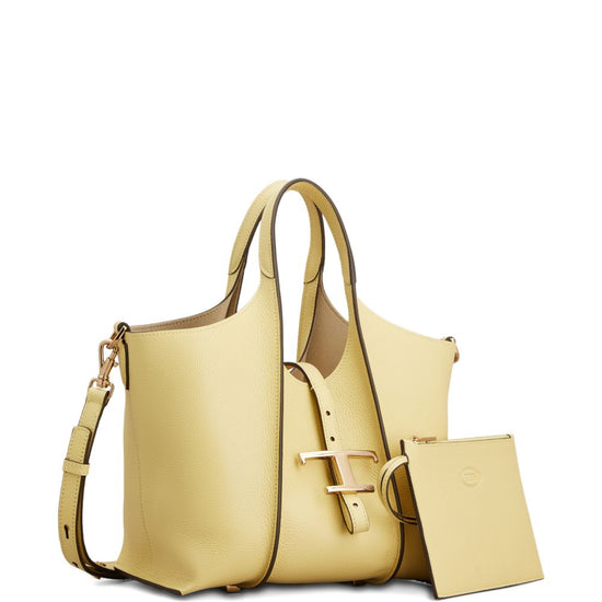 Yellow top handle detachable adjustable shoulder strap removable pouch gold-tone hardware press-stud fastening mini leather tote bag size and fit - depth: 12.0 centimetres. height: 19.5 centimetres. width: 30.0 centimetres.