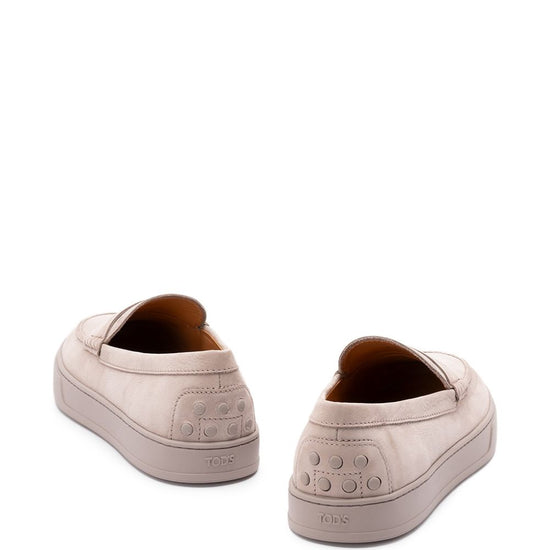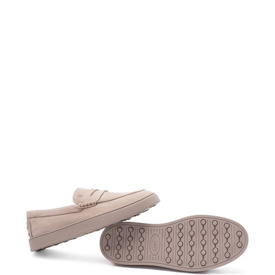 Light beige penny strap logo detail round toe slip-on style calf suede suede leather loafers