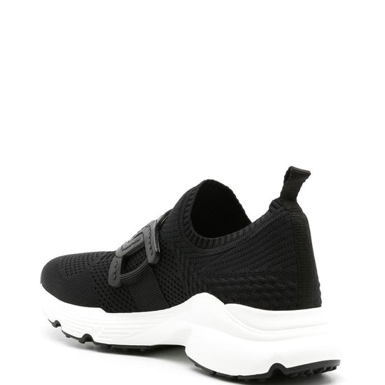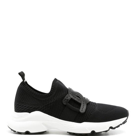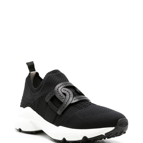 Black fabric/calf leather chain-link detailing knitted upper round toe slip-on style sock-style ankle pull-tab at the heel branded insole chunky rubber sole kate sneakers size and fit - heel 1,6 in / 4 cm; platform 1 in / 2,5 cmheel 1,6 in / 4 cm; platform 1 in / 2,5 cm