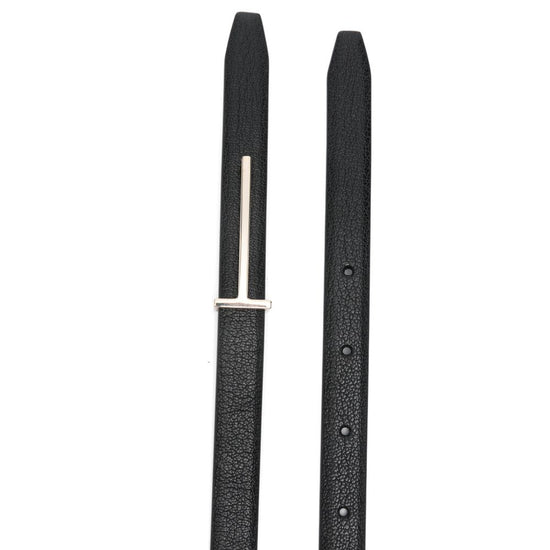Black t-bar detail pin buckle fastening this piece comes complete with a protective dust bag. leather slim belt