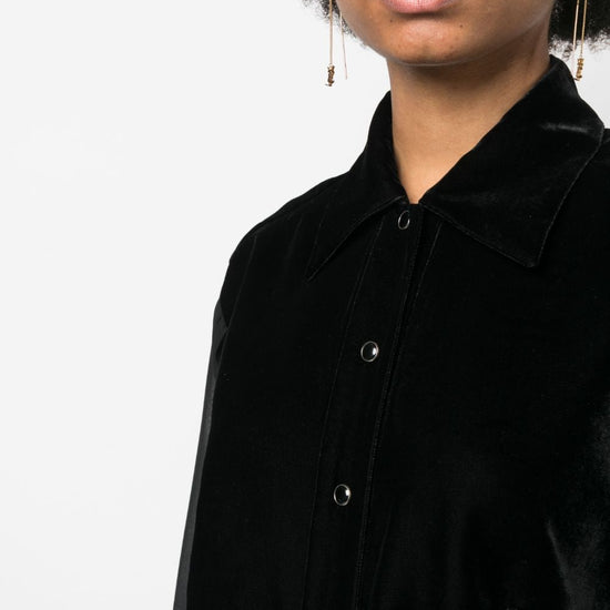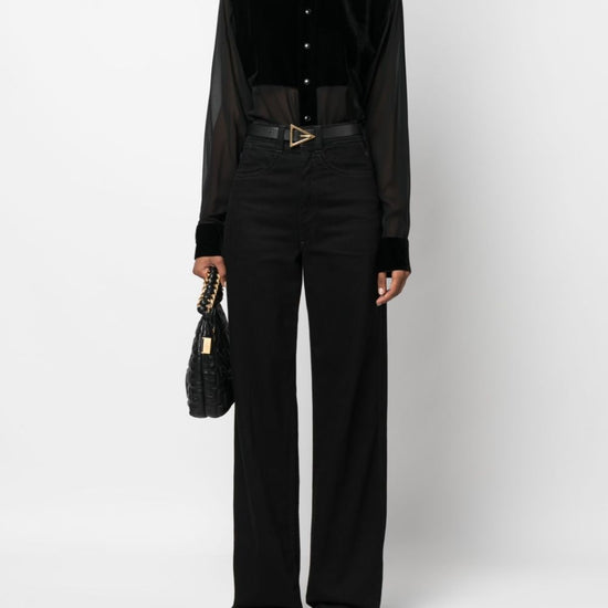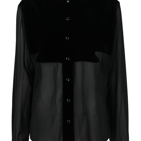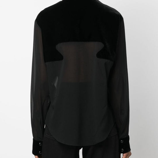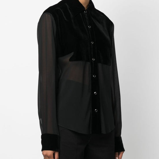 Panelled buttoned silk shirt from tom ford featuring black, silk, semi-sheer construction, panelled design, spread collar, front button fastening, shirt sleeves and curved hem. silk georgette shirt size and fit - this piece fits true to size. we recommend you get your regular size. model is 1,75m / 5ft 8in wearing size 40 (it)