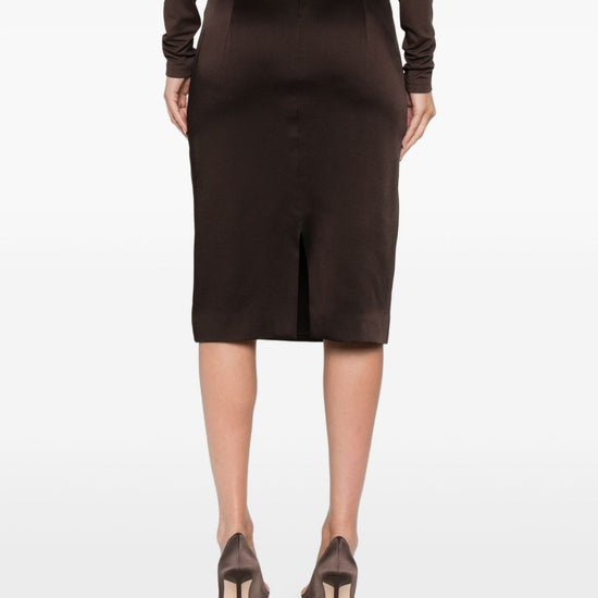 rear zip fastening satin midi skirt size and fit - this piece fits true to size. we recommend you get your regular size. model is 1,75m / 5ft 8in wearing size 40 (it)