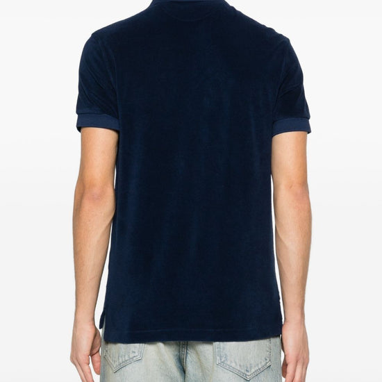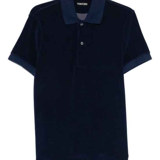 Blue knitted construction point collar button fastening short sleeves ribbed cuffs cotton polo shirt