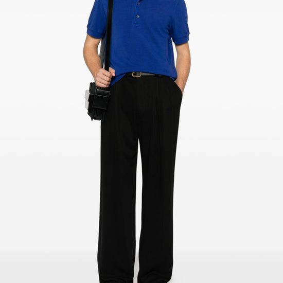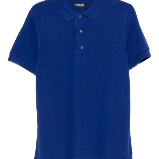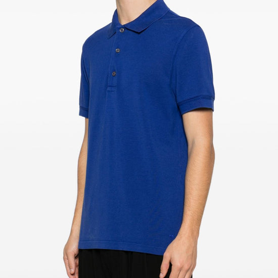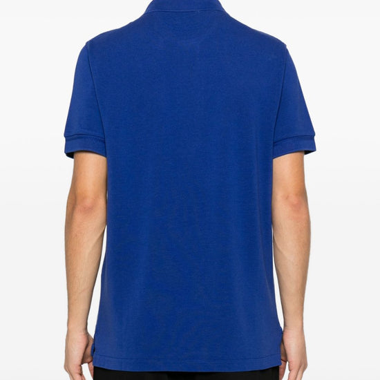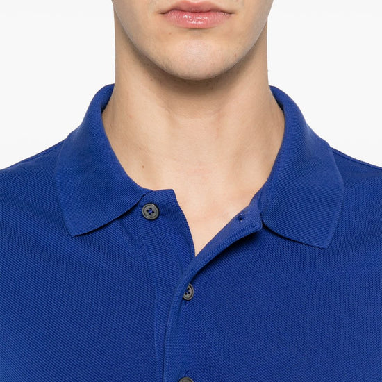 Royal blue piqué knit short sleeves point collar cotton blend polo shirt