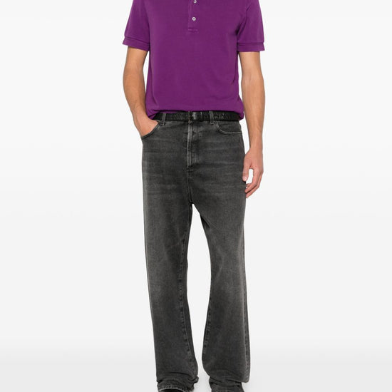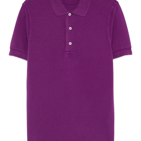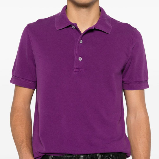 Purple ribbed trims button placket short sleeves polo collar cotton blend polo shirt