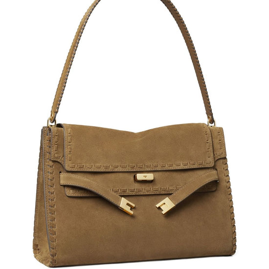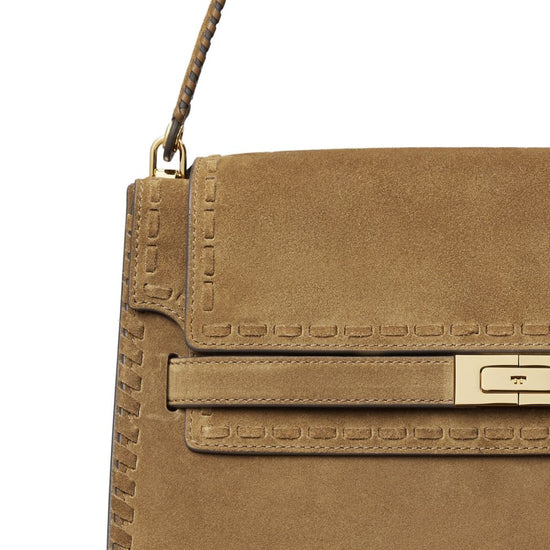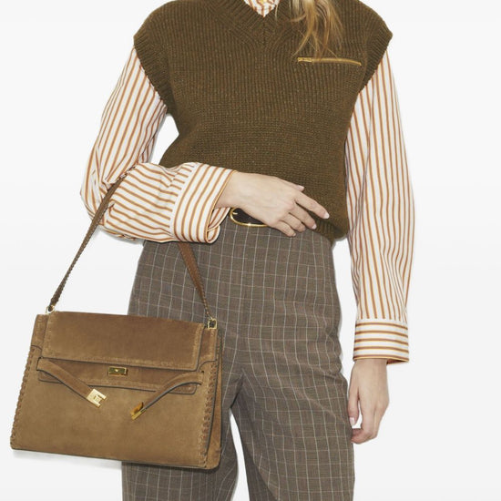 Tobacco brown suede shoulder strap gold-tone hardware flap top this piece comes complete with a protective dust bag. lee radziwill suede leather shoulder bag size and fit - height 23 cm. width 31.5 cm. depth 11 cm.