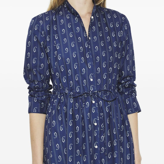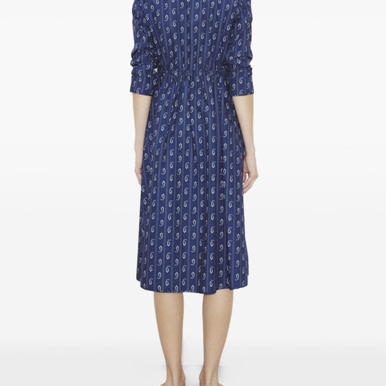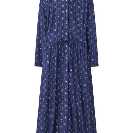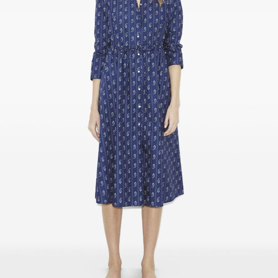Blue all-over print button fastening tie detail long sleeves printed cotton shirtdress