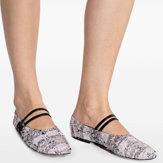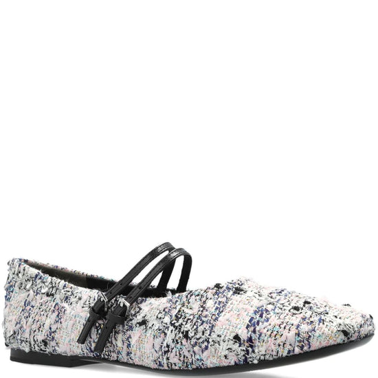 White/multicoloured strap buckle fastening flat sole
