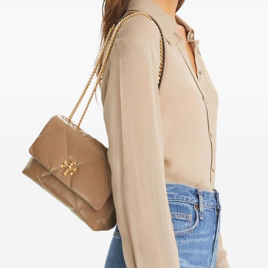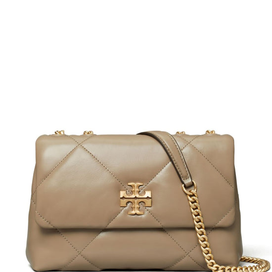 Taupe nappa leather smooth grain foldover top with magnetic fastening adjustable chain-link shoulder strap diamond quilting gold-tone logo plaque signature double t motif main compartment internal logo plaque internal zip-fastening pocket kira diamond small leather shoulder bag size and fit - width 10,83 in / 27,5 cm height 7,48 in / 19 cm depth 3,15 in / 8 cm strap 39,37 in / 100 cm