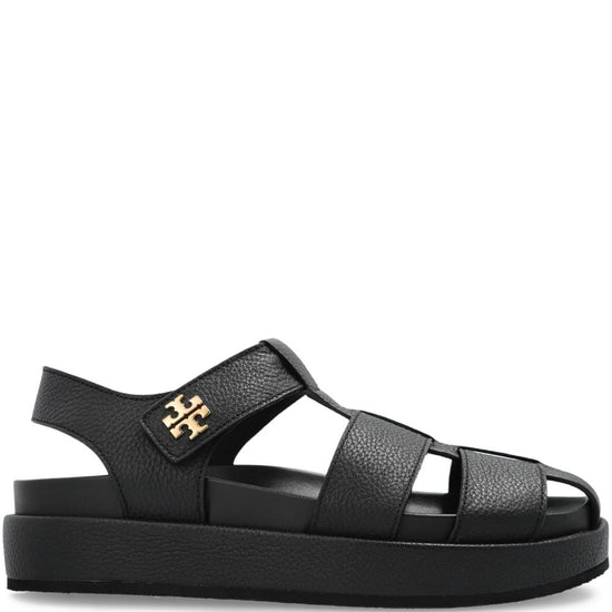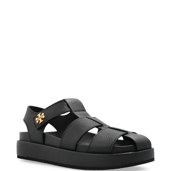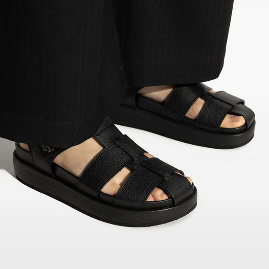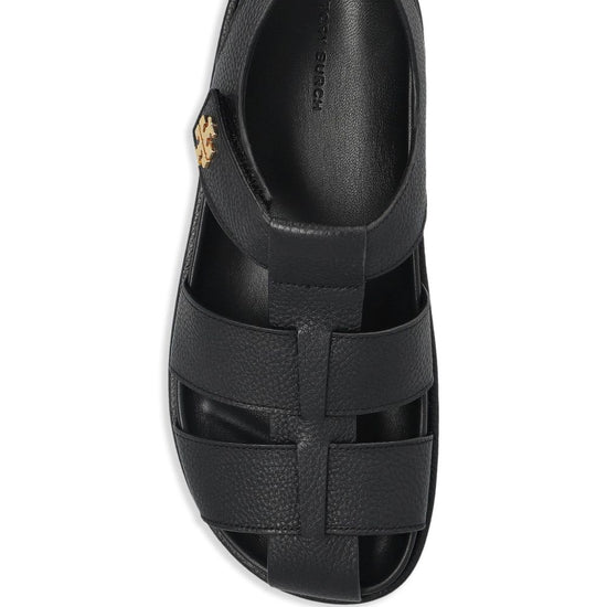 Black multiple strap design logo detailing cushioned sole open toe flat base kira fisherman sport leather sandals size and fit - sole 3 cm