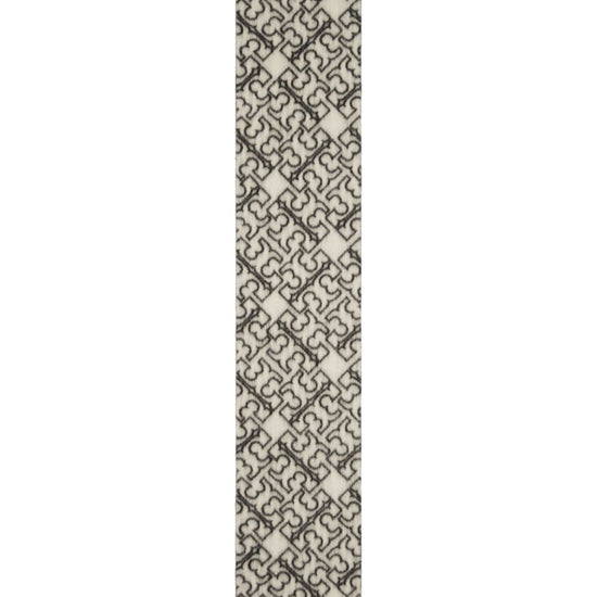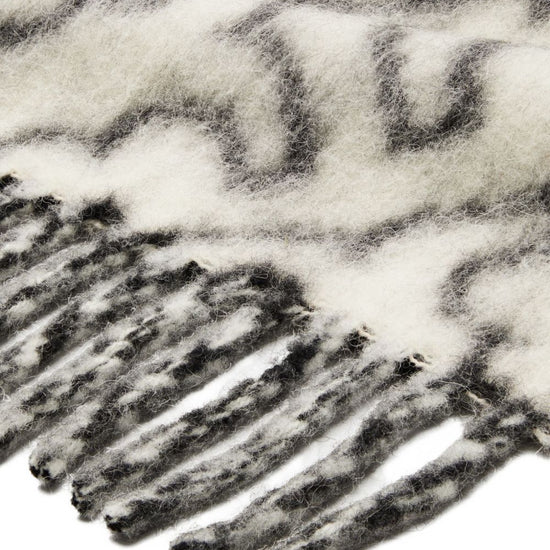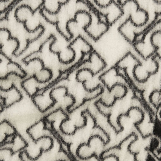 Black ivory logo pattern fringed edges wool rectangular shape soft texture
