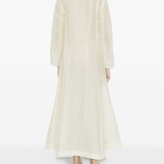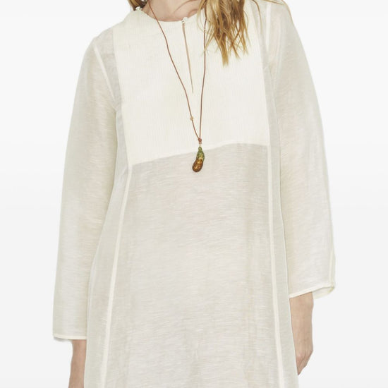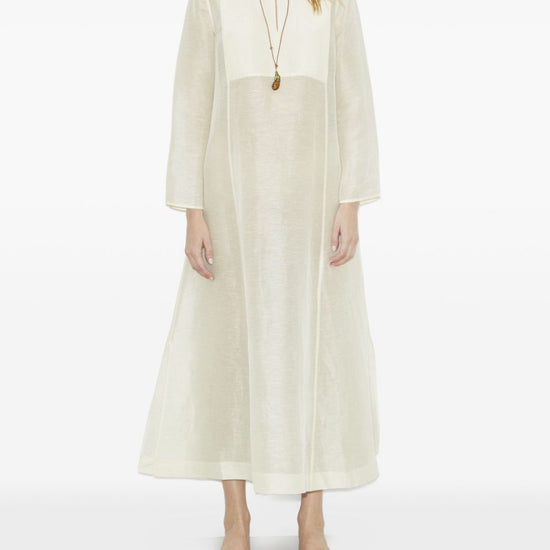 Ivory panelled long sleeves round neck keyhole detail linen and silk long kaftan