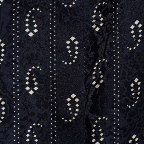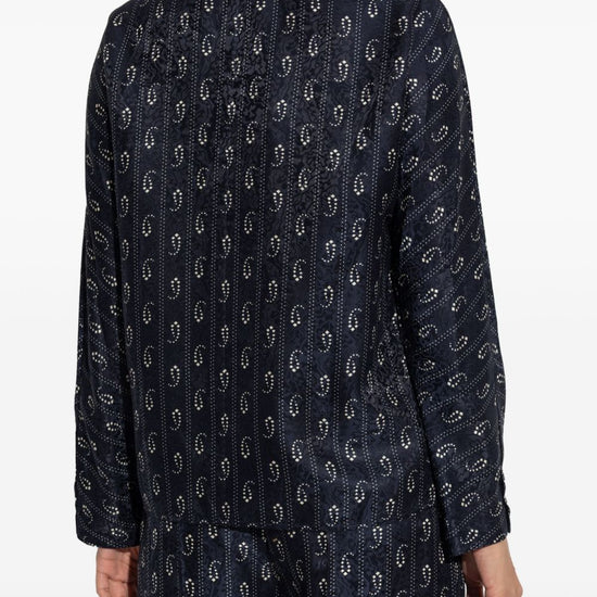 Navy blue paisley print button fastening mandarin collar long sleeves jacquard silk shirt size and fit - this piece fits true to size. we recommend you get your regular size. model is 1,75m / 5ft 8in wearing size 4 (us)