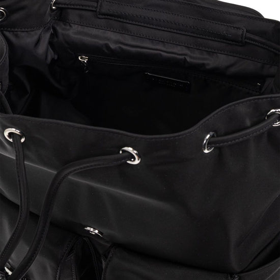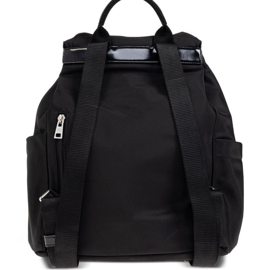 Black foldover top top drawstring fastening main compartment internal zip-fastening pocket virginia nylon backpack size and fit - width 27 cm, height 33.5 cm, depth 12.5 cm, handle 10 mc, shoulder strap 90 cm