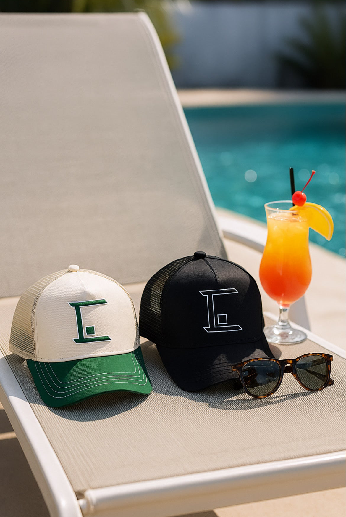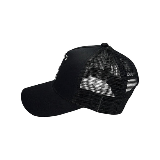 our 3d embroidered c logo on the front and mesh on the back with an adjustable plastic snap on the back for fitting alongside.