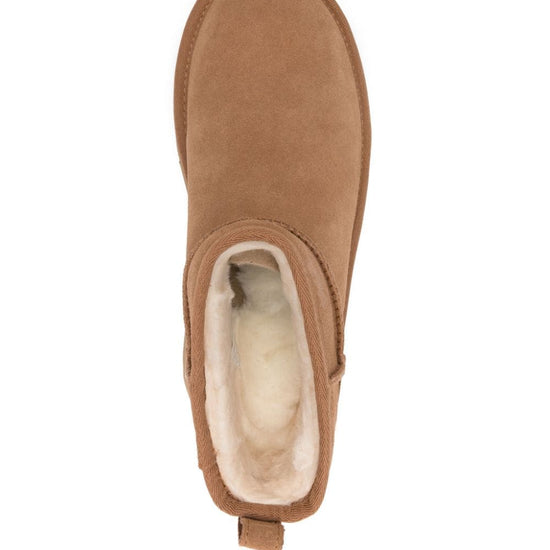 Chestnut brown calf suede seam detailing pull-on style pull-tab at the heel debossed logo to the rear round toe branded insole signature uggplush™ lining platform sole rubber sole eva outsole we've partnered with good on you — an independent agency that rates how brands perform in relation to their impact on the planet, people and animals, with a multi-criteria rating simplified to a five points scale. in order to be awarded our conscious label, larger brands need to score a minimum of four out of five ('good'), while smaller brands must score at least three out of five ('it's a start'). this item comes from a brand rated three out of five ('it's a start') by good on you at the time it was added on farfetch. please note, this is a brand-level rating and does not guarantee that this product is made with conscious materials. learn more about what makes a product conscious on our conscious criteria page classic ultra mini heights boots size and fit - heel 3 in / 7,5 cm