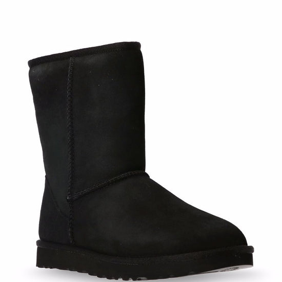 Black sheepskin shearling lining logo patch to the rear ankle-length round toe flat rubber sole classic short ii boots