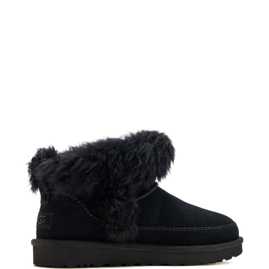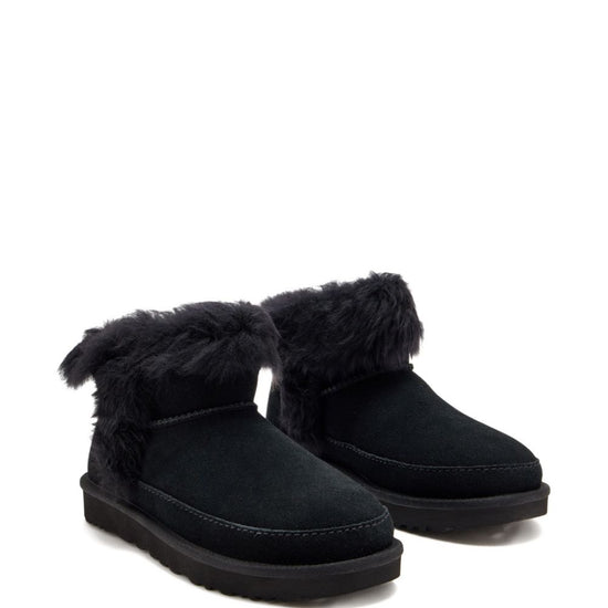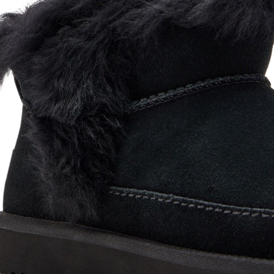 Black suede ridged sole pull tab at rear classic ultra mini chalet boots