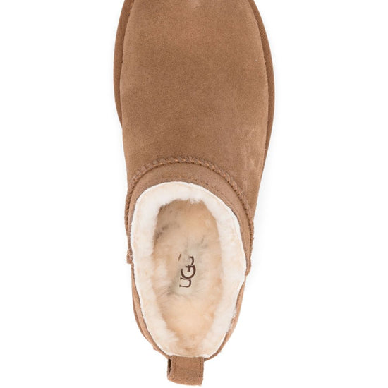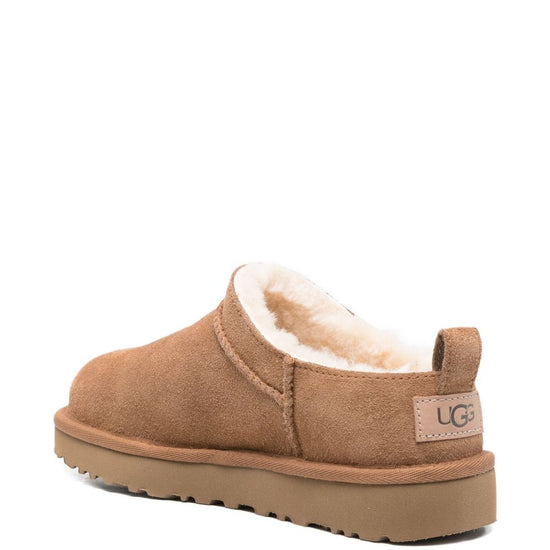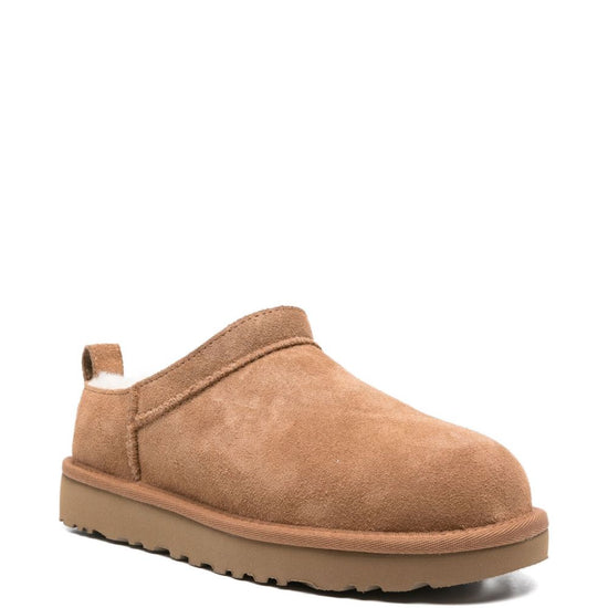 Beige,suede, sheepskin lining, slip-on style, round toe. classic micro slippers