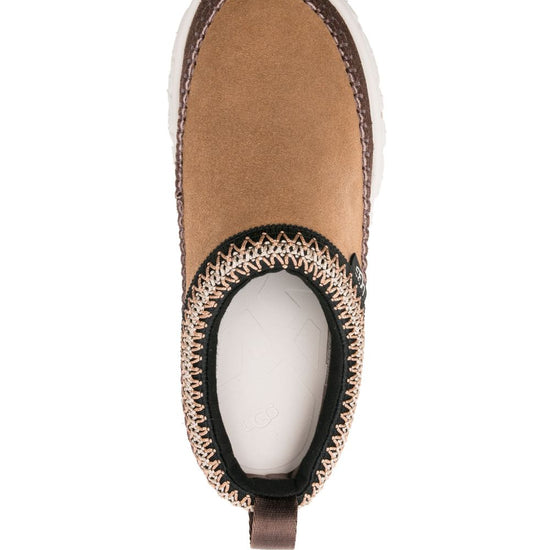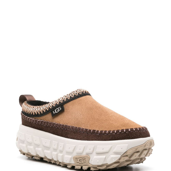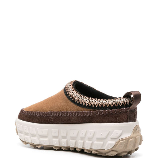 Ochre brown suede whipstitch trim decorative stitching pull-tab at the heel mini logo tag logo at the sole round toe slip-on style branded insole moulded footbed eva midsole platform sole soft-spike sole venture daze sneakers size and fit - heel 2,4 in / 6 cm; platform 2 in / 5 cm