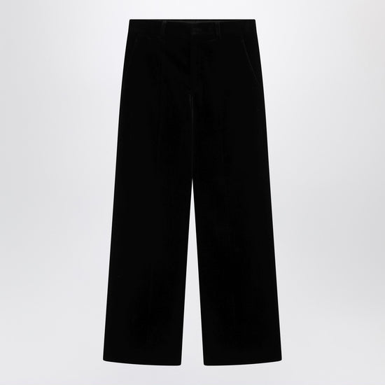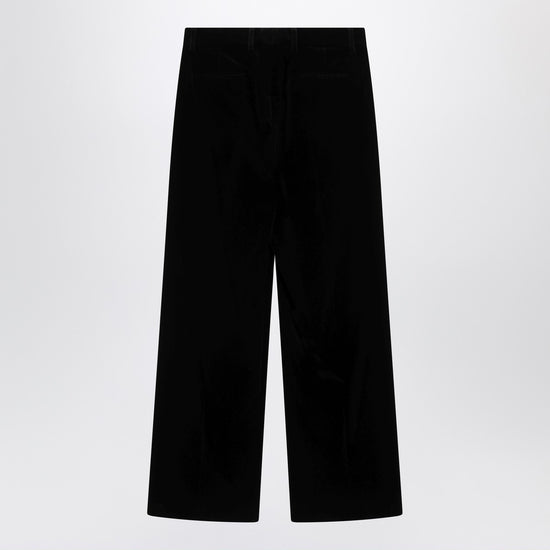 Valentino wide black cotton velvet trousers, featuring front zip and hook closure, two side pockets, two back welt pockets and regular fit. size and fit - model wears size 50 it model measurements: height: 189 cm chest: 104 cm waist: 78 cm hips: 95 cm