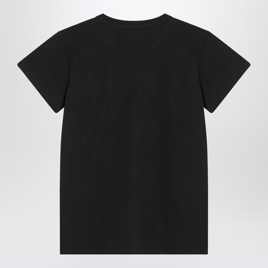 Valentino t-shirt in black cotton, featuring ribbed crewneck, short sleeves, contrasting red apollon/dyonisos print on the chest, and regular fit. size and fit - model wears size s model measurements: height: 182 cm chest: 79 cm waist: 62 cm hips: 90 cm