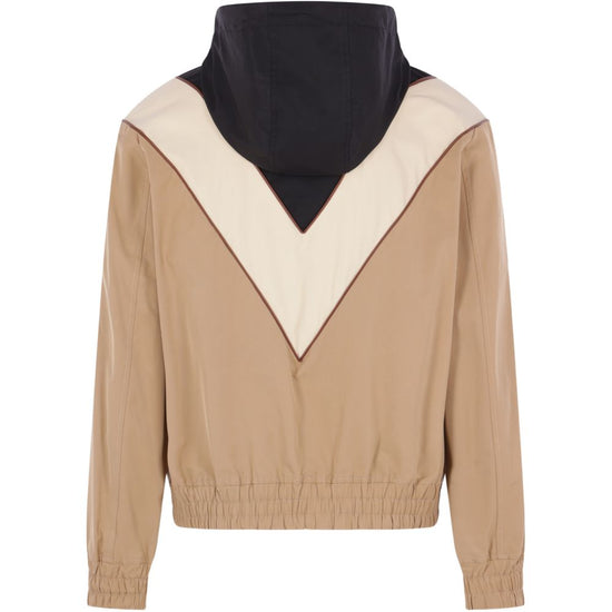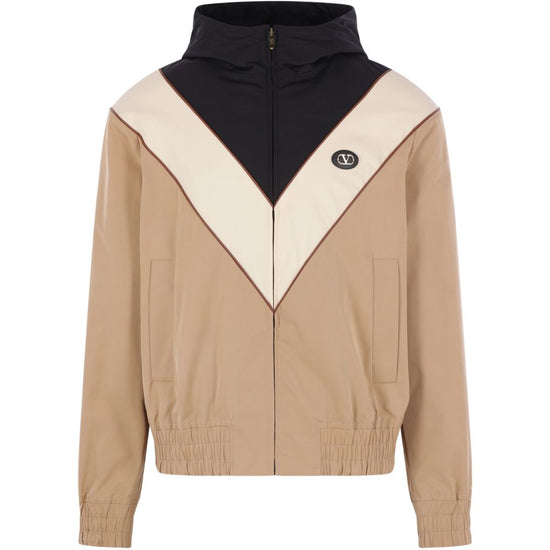 Beige and black hood front zip fastening logo patch elasticated hem ribbed cuffs vlogo blouson jacket size and fit - .