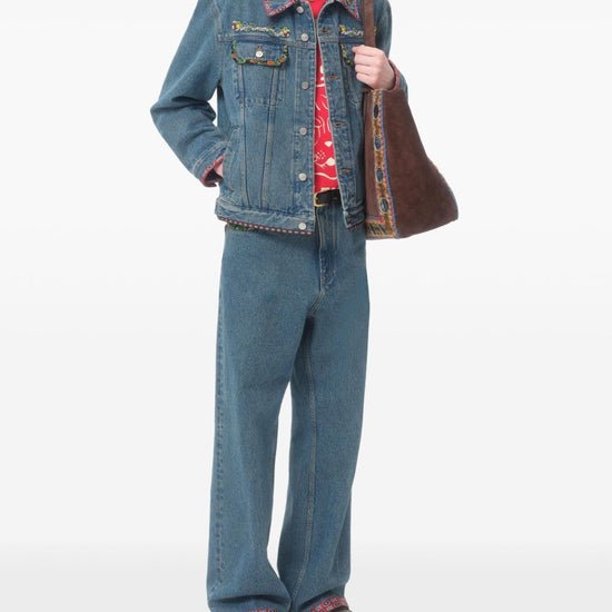 bead detailing embroidered denim jacket