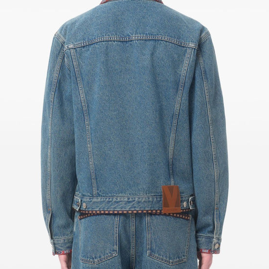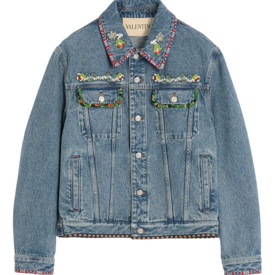 Valentino Bead-Embellished Floral-Trimmed Denim Jacket