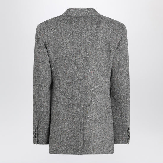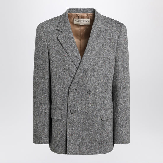 Valentino ivory and black bouclé natté wool double-breasted jacket, featuring classic lapels, long sleeves with buttoned cuffs, front button closure, two front flap pockets, one chest welt pocket, back vent and regular fit. size and fit - model wears size 50 it model measurements: height: 189 cm chest: 104 cm waist: 78 cm hips: 95 cm
