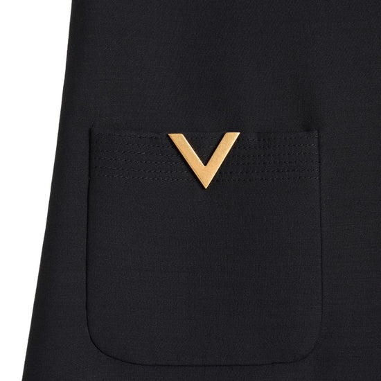 Black bow detail rear zip closure wool and silk blend dress