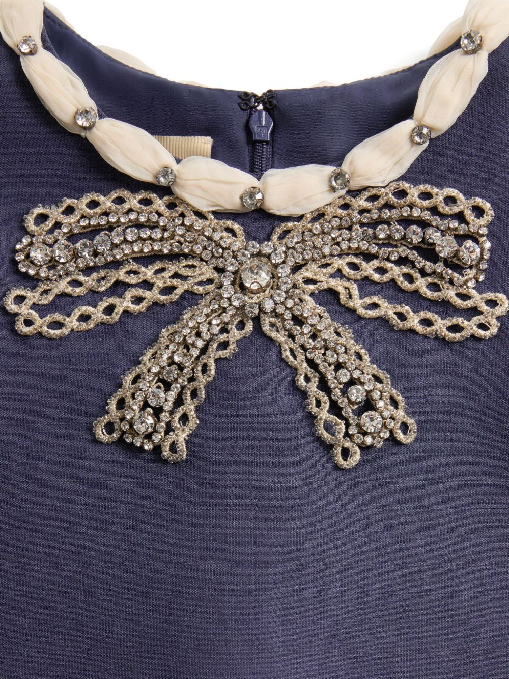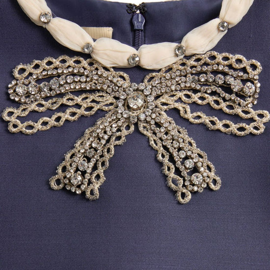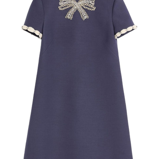 rhinestone embellishment wool and silk embroidered dress