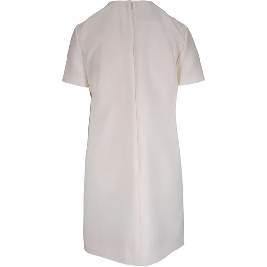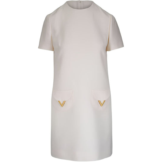 Ivory white patch pockets gold-tone hardware short sleeves round neck rear zip fastening vlogo signature wool and silk dress