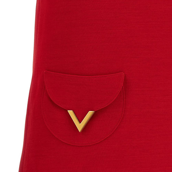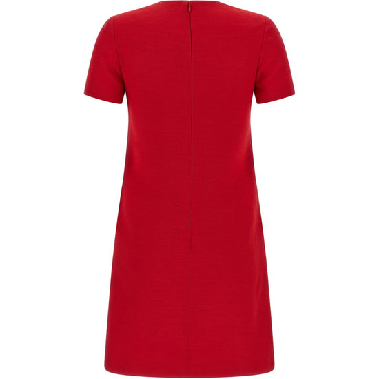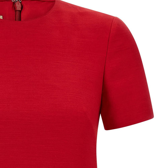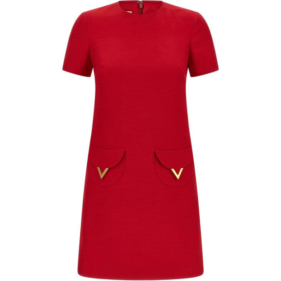 Red crew neck short sleeves back zip fastening vlogo signature wool and silk dress