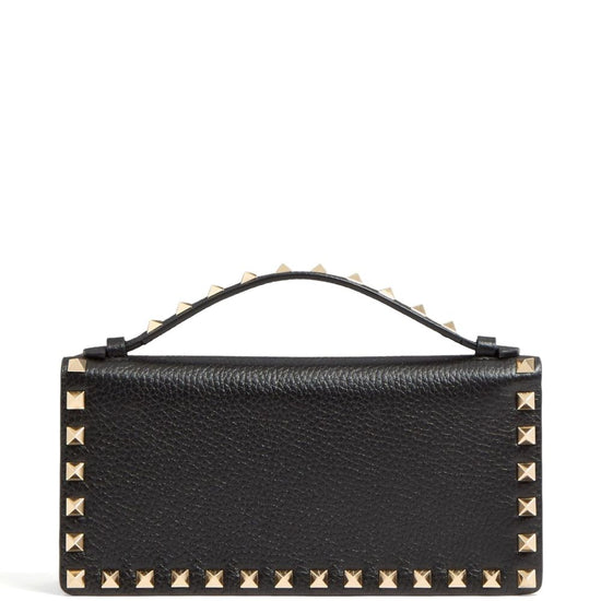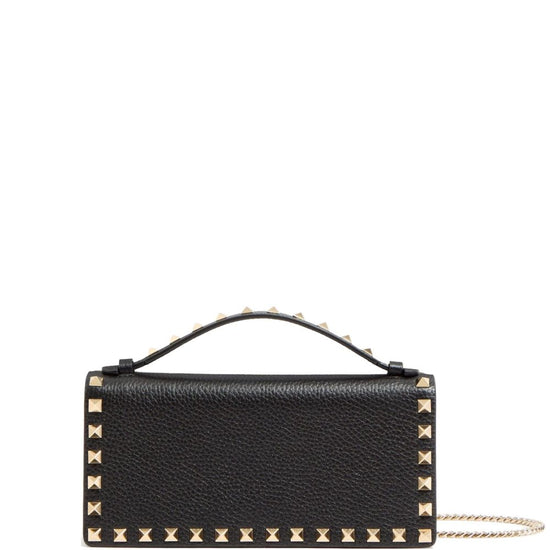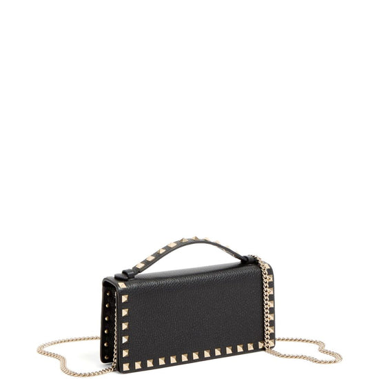 Black zip-fastening compartment single top handle chain-link shoulder strap rectangle shape rockstud leather wallet on chain size and fit - depth 4 cm. handle 4 cm. height 10 cm. width 21 cm. . . .
