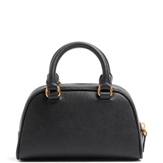 Black grainy finish adjustable-removable shoulder strap zip closure one internal card slot vlogo signature leather mini bag
