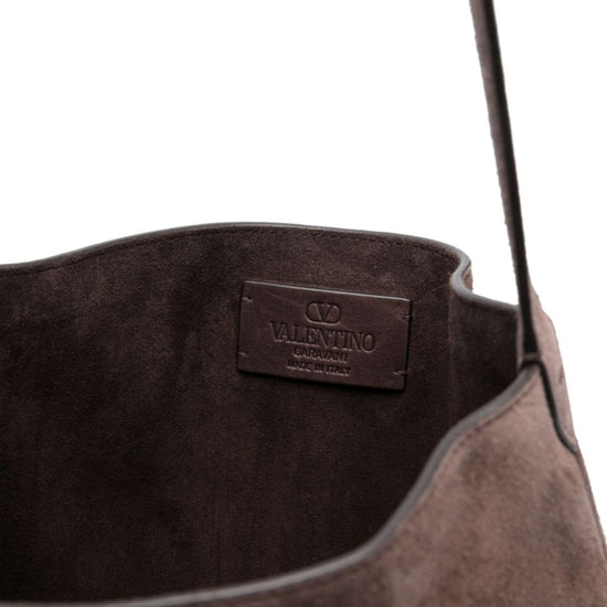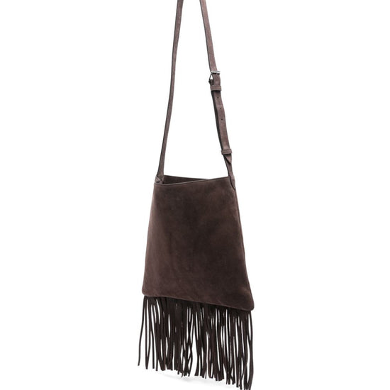 Taupe brown adjustable shoulder strap vlogo signature fringe detailing this piece comes complete with a protective dust bag. nellcote suede leather shoudler bag size and fit - width 11,81 in / 30 cm