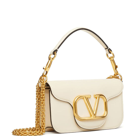 Valentino bag ivory white, leather vlogo signature single detachable top handle detachable chain-link shoulder strap foldover top with magnetic fastening main compartment internal slip pocket internal logo stamp gold-tone hardware the full look includes valentino garavani accessories. locò small leather shoulder bag