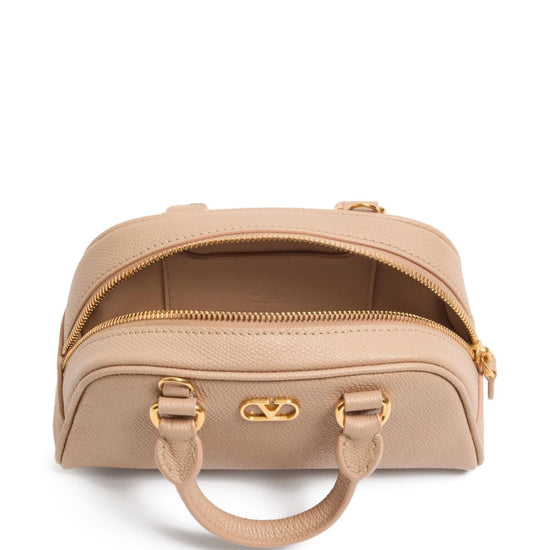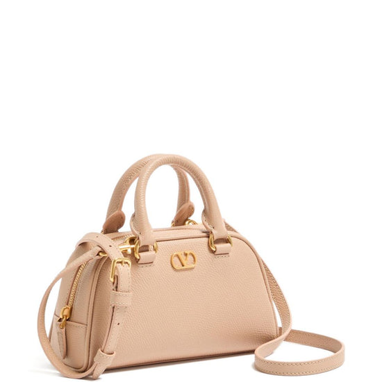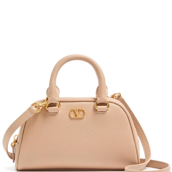 Pink vlogo signature logo and hardware in antique brass finish top handles detachable adjustable shoulder strap top zip closure the full look includes valentino garavani accessories. vlogo signature leather mini bag size and fit - depth: 7.0 centimetres. height: 11.0 centimetres. width: 19.0 centimetres. strap: 55.0 centimetres.